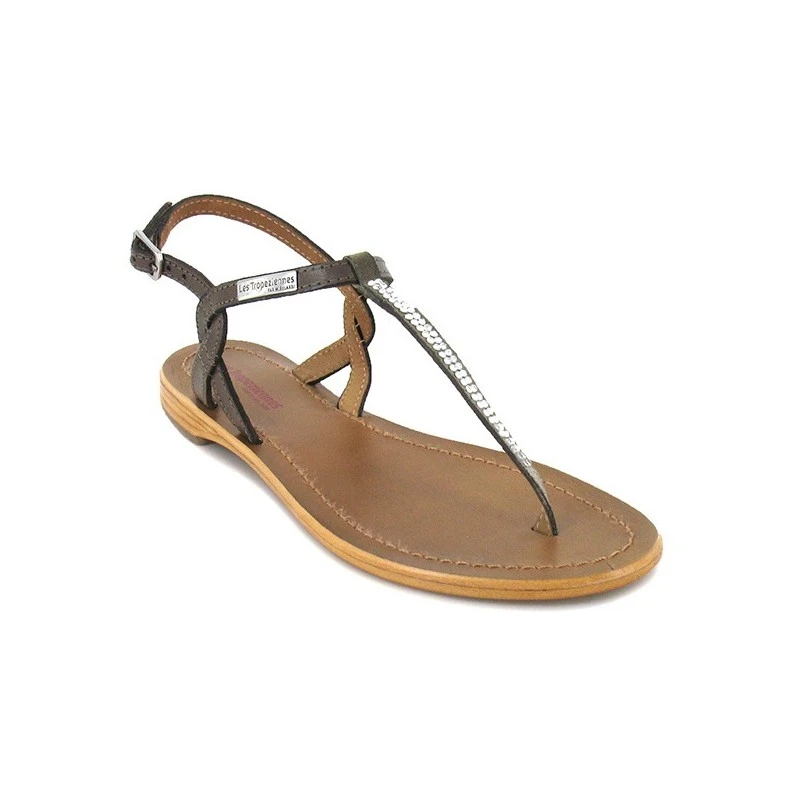 Sandales plates pour femme Les TropĂ©ziennes. HabillĂ©es de cuir, elles se parent d’une rangĂ©e de strass pour mettre en valeur votre look estival. IdĂ©als pour les journĂ©es chaudes, ces jolis nu-pieds bien ajourĂ©s vous sĂ©duiront par leur style Ă©lĂ©gant.